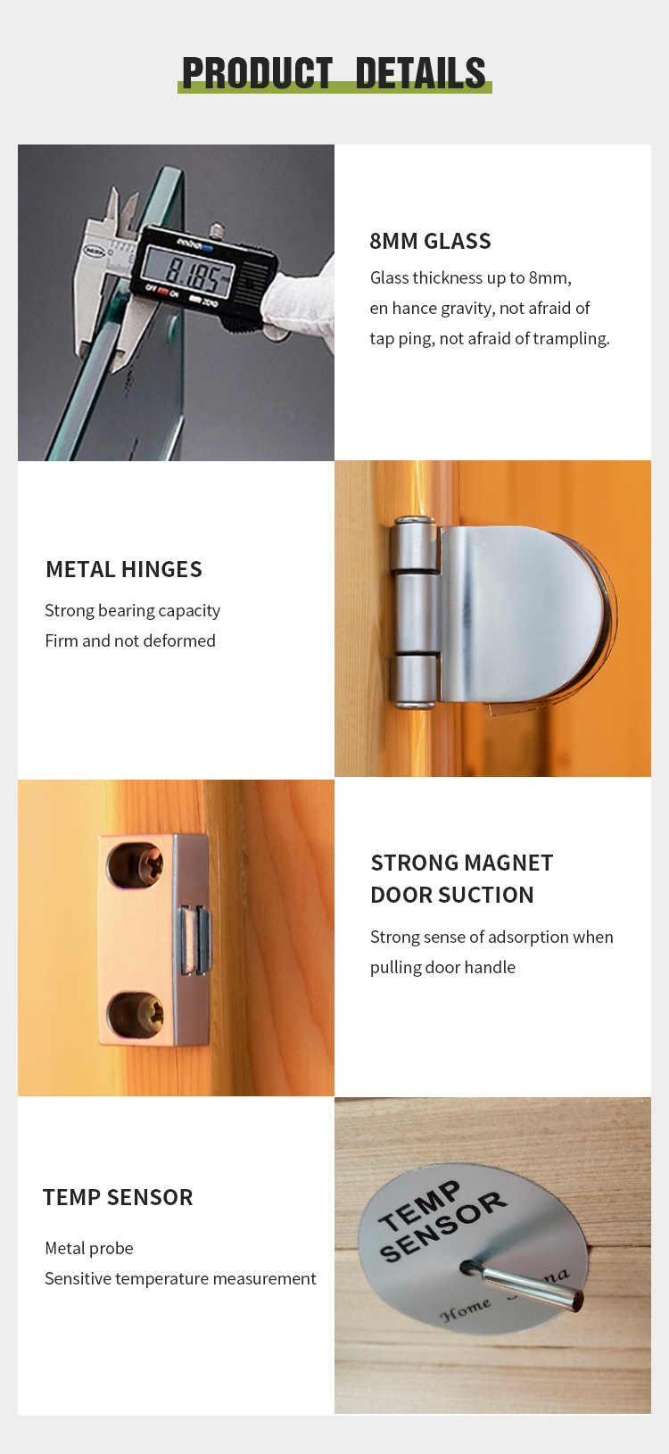 8MM tvrdené sklo: Ako je uvedené v detailoch produktu, drevená infračervená a parná sauna pre 1 až 3 osoby je vybavená tvrdeným sklom s hrúbkou 8 mm. Vyznačuje sa výnimočnou odolnosťou, zvyšuje odolnosť voči gravitácii. Nemusíte sa obávať klopania alebo dupania – je skonštruovaný tak, aby vydržal každodenné používanie.