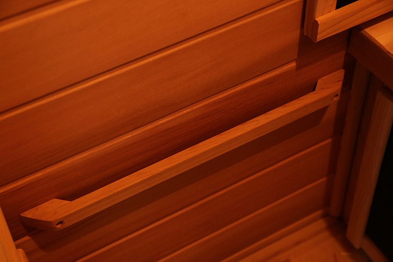 Vynikajúci výber materiálu : prémiový hemlock je vybraný ako primárny materiál pre saunu. Hemlockova prírodná, krásna textúra ponúka rustikálny a prírodný vizuálny zážitok. Jeho vynikajúca vysoká teplota odporu zaisťuje, že sauna zostáva deformáciou - voľná a trhliny odolná aj po predĺženom použití pri vysokých teplotách. Napríklad počas častého denného používania si sauna môže zachovať svoju robustnú štruktúru. Stabilita Hemlocka a prírodná drevná vôňa navyše poskytujú používateľom pohodlný a upokojujúci zážitok z sauny.