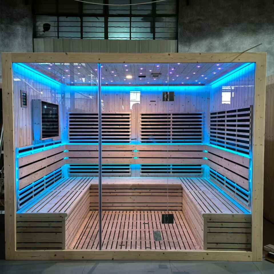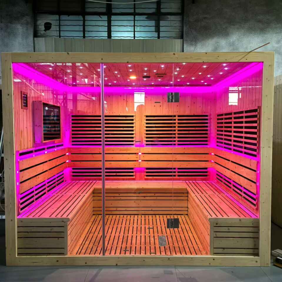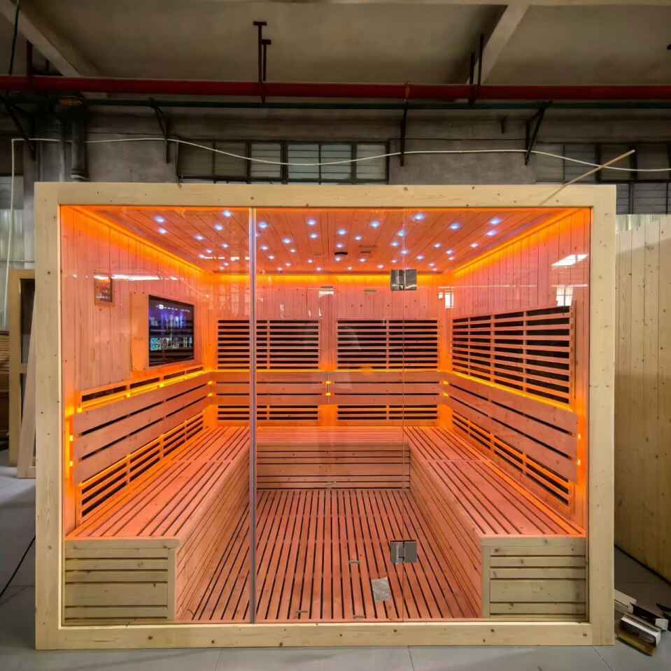 Táto sauna je navrhnutá pre 5 až 10 používateľov a je ideálna na rodinné stretnutia, stretnutia priateľov alebo malé komerčné priestory, ako sú kúpele a wellness centrá. Vyrobené z vysoko kvalitného saunového dreva, zaisťuje odolnosť a zároveň prináša prirodzenú, hrejivú estetiku do vášho priestoru.