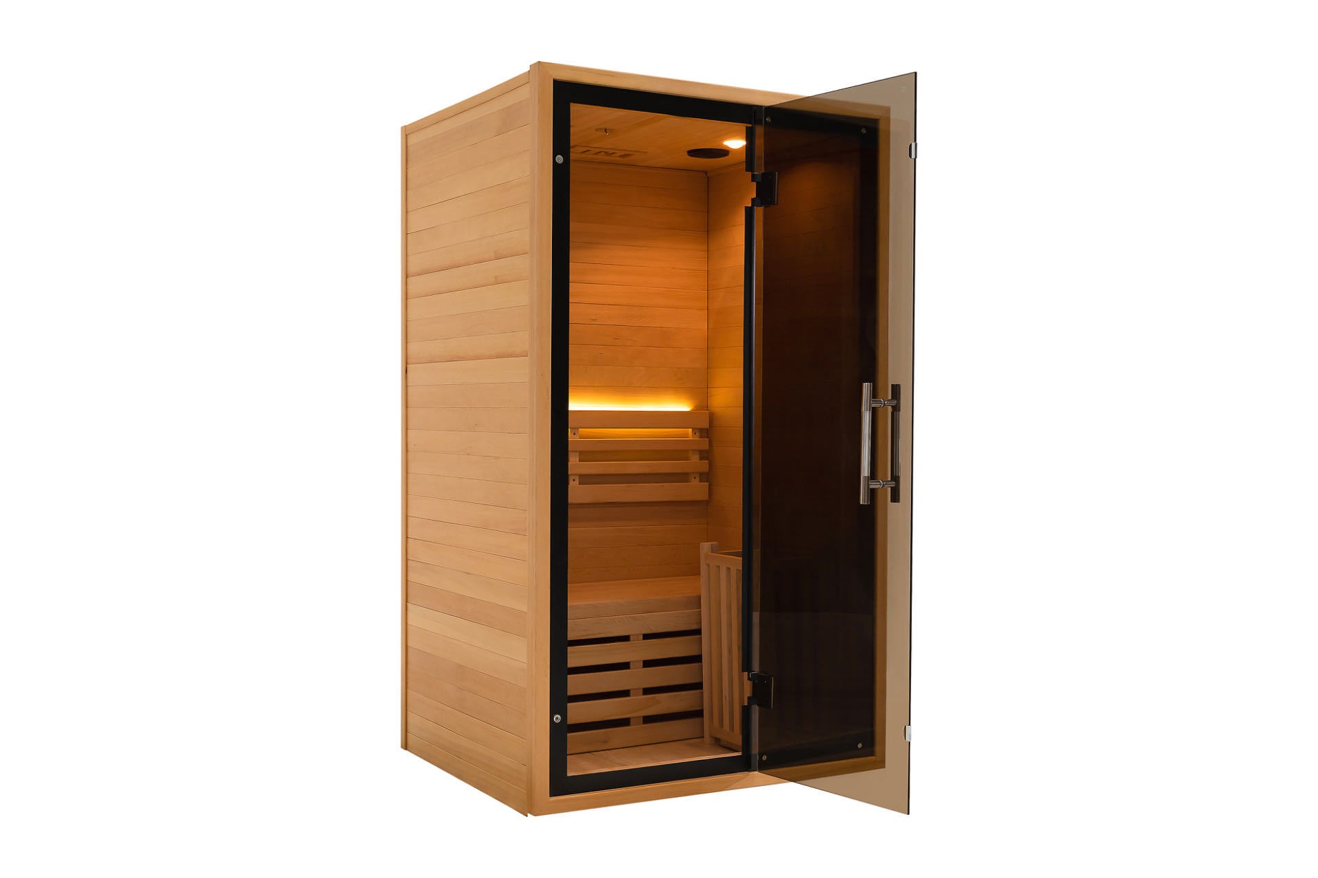 Základom tejto sauny je prírodné masívne drevo, jadro inteligentnej technológie a vrcholom sú sivočierne sklenené dvere. Vytvára nový štandard pre domáce wellness vo všetkých aspektoch od vzhľadu až po funkčnosť. Nechajte si vychutnať saunovú starostlivosť na profesionálnej úrovni bez toho, aby ste opustili domov, a začnite životný štýl, ktorý spája zdravie a štýl.