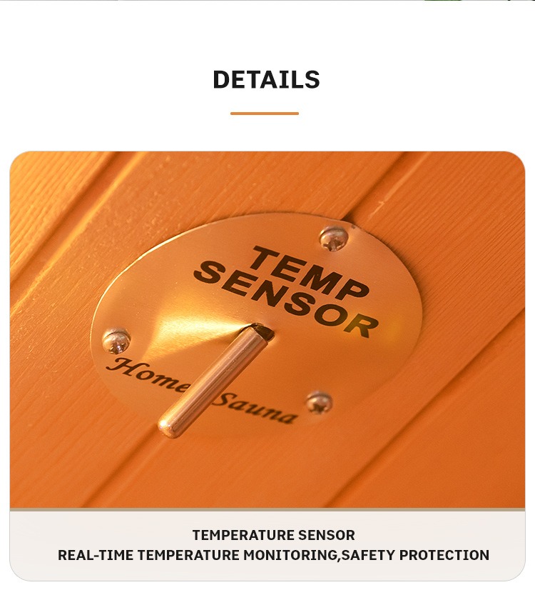 - Systém riadenia teploty v reálnom čase: Vstavaný teplotný senzor presne monitoruje vnútornú teplotu, aby bola zaistená bezpečnosť v saune.