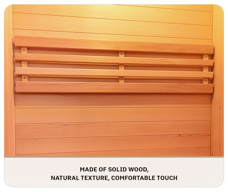 Vybrané sú dve prémiové kanadské dreviny, Hemlock a Red Cedar. Drevo je tvrdé a odolné, s jasnou prirodzenou textúrou a rovnomerne elegantnou farbou. Prirodzené vlastnosti každého kusu dreva dodávajú saune jedinečnú textúru, ktorá vnáša prirodzené a špičkové estetické gény do vášho domáceho wellness priestoru. vnútorná infračervená sauna pre domácnosť.