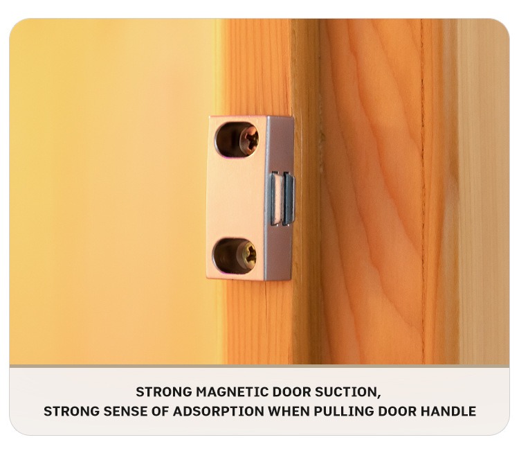 - Kovové pánty a magnetická západka dverí: Kovové pánty majú silnú nosnosť bez deformácie a magnetická západka dverí sa pevne adsorbuje, aby zaistila teplo a súkromie.
