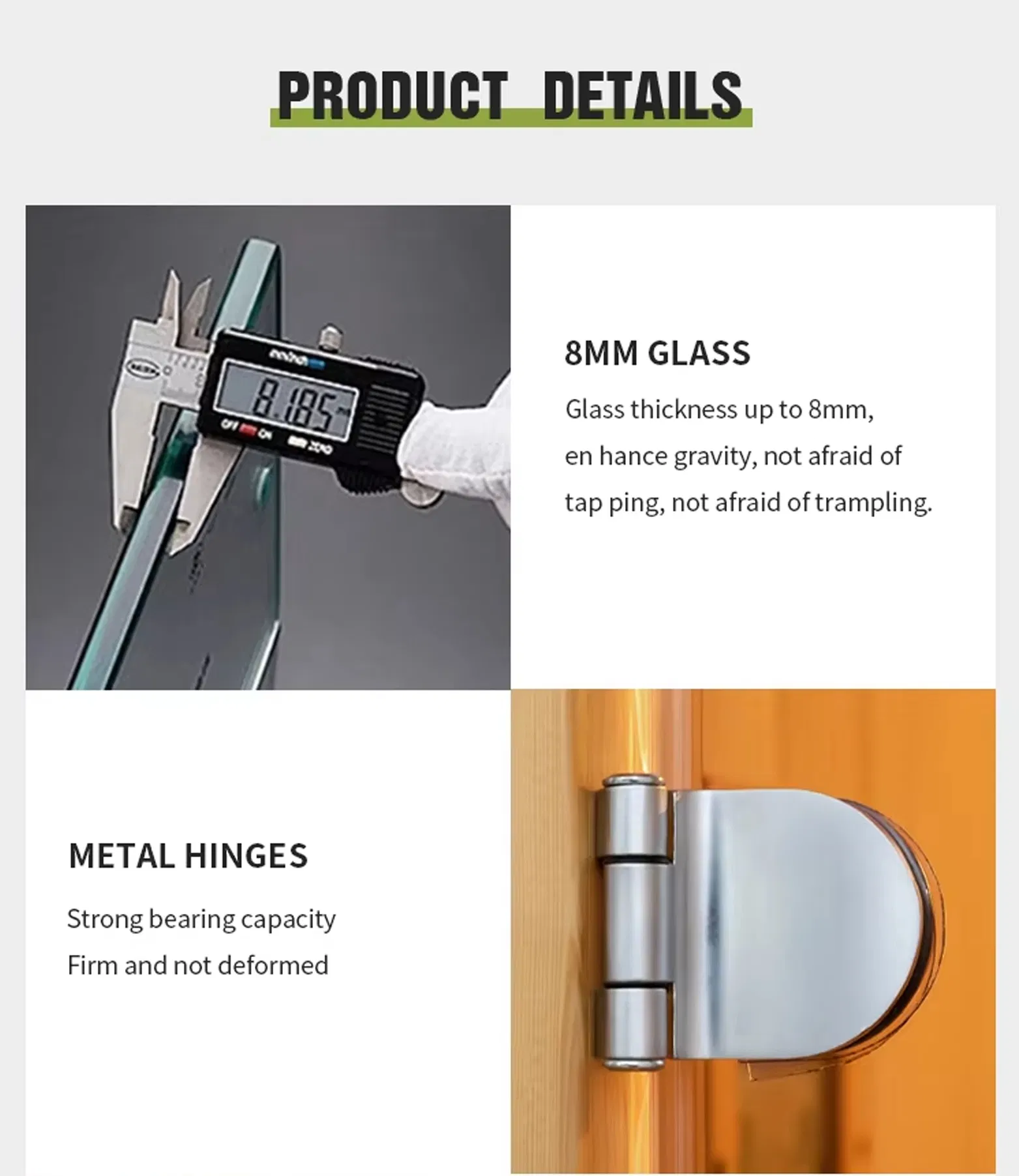 - 8 mm sklo odolné proti výbuchu – Hrubé sklo odolné proti rozbitiu, ktoré sa nepoškriabe ani nedeformuje ani pri každodennom používaní.