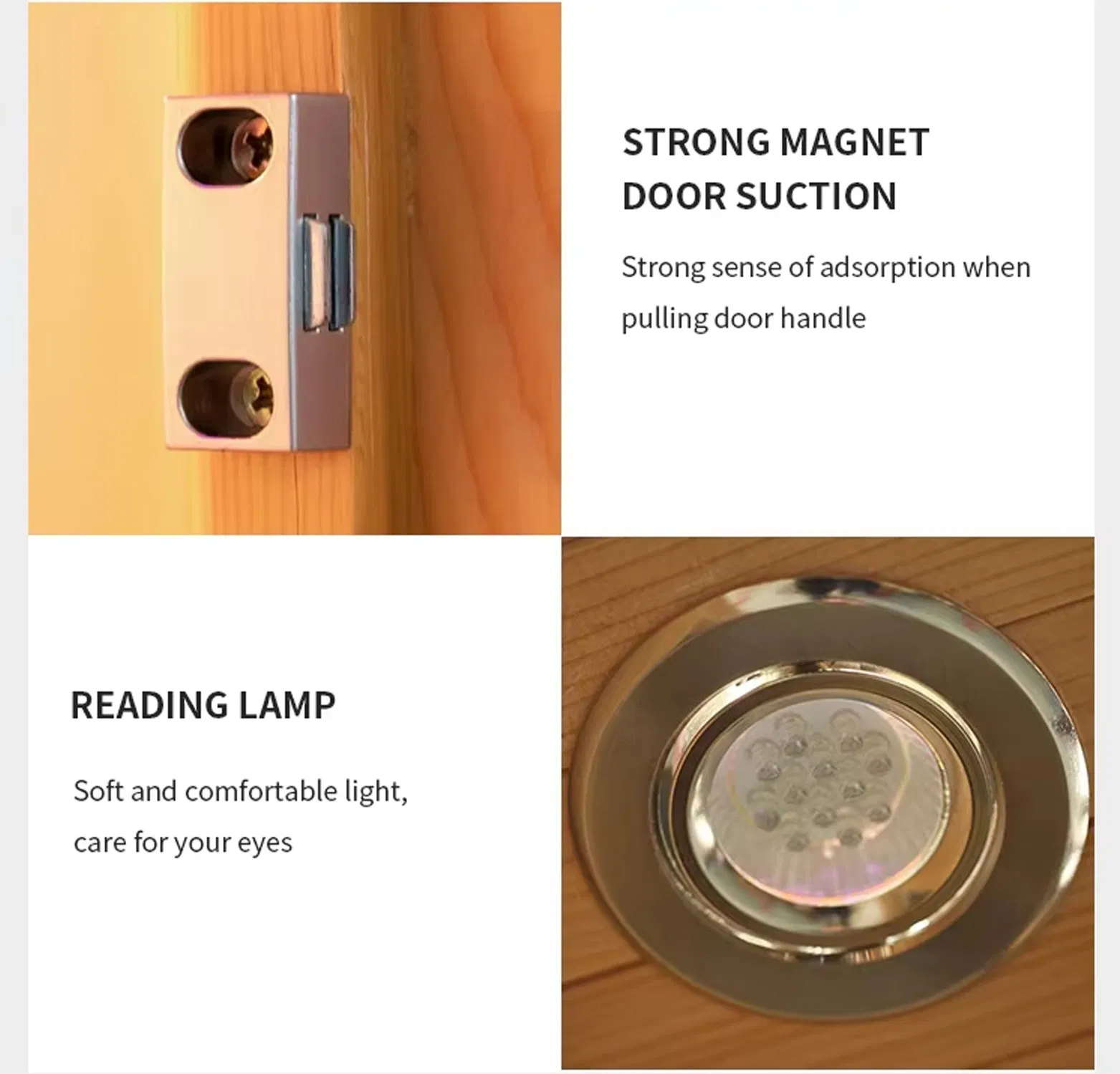 - Magnetická západka dvierok – ticho sa zatvorí, aby sa zaistilo teplo a zabránilo sa prieniku prievanu. Už žiadne búchanie dverí alebo strata teploty.
